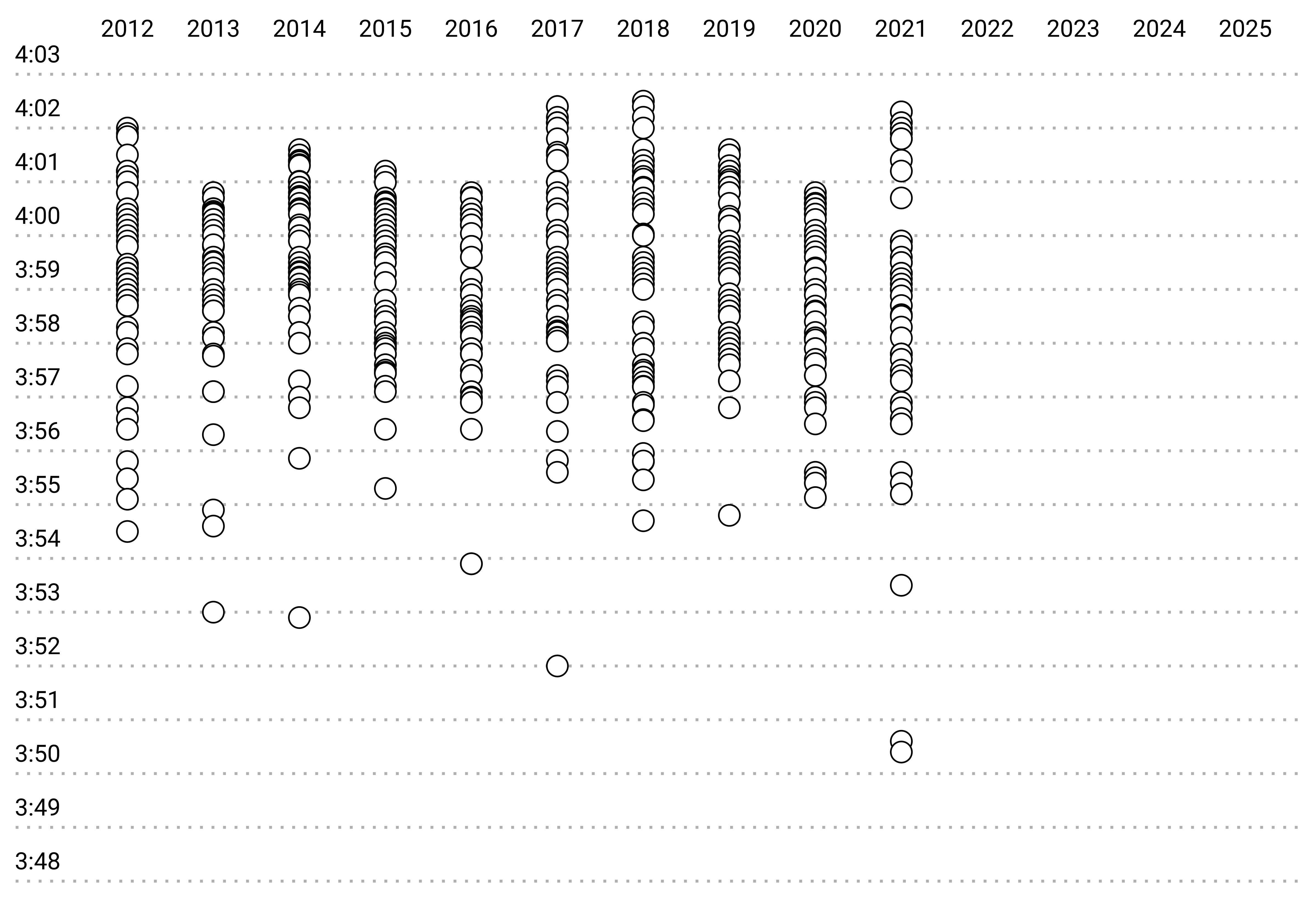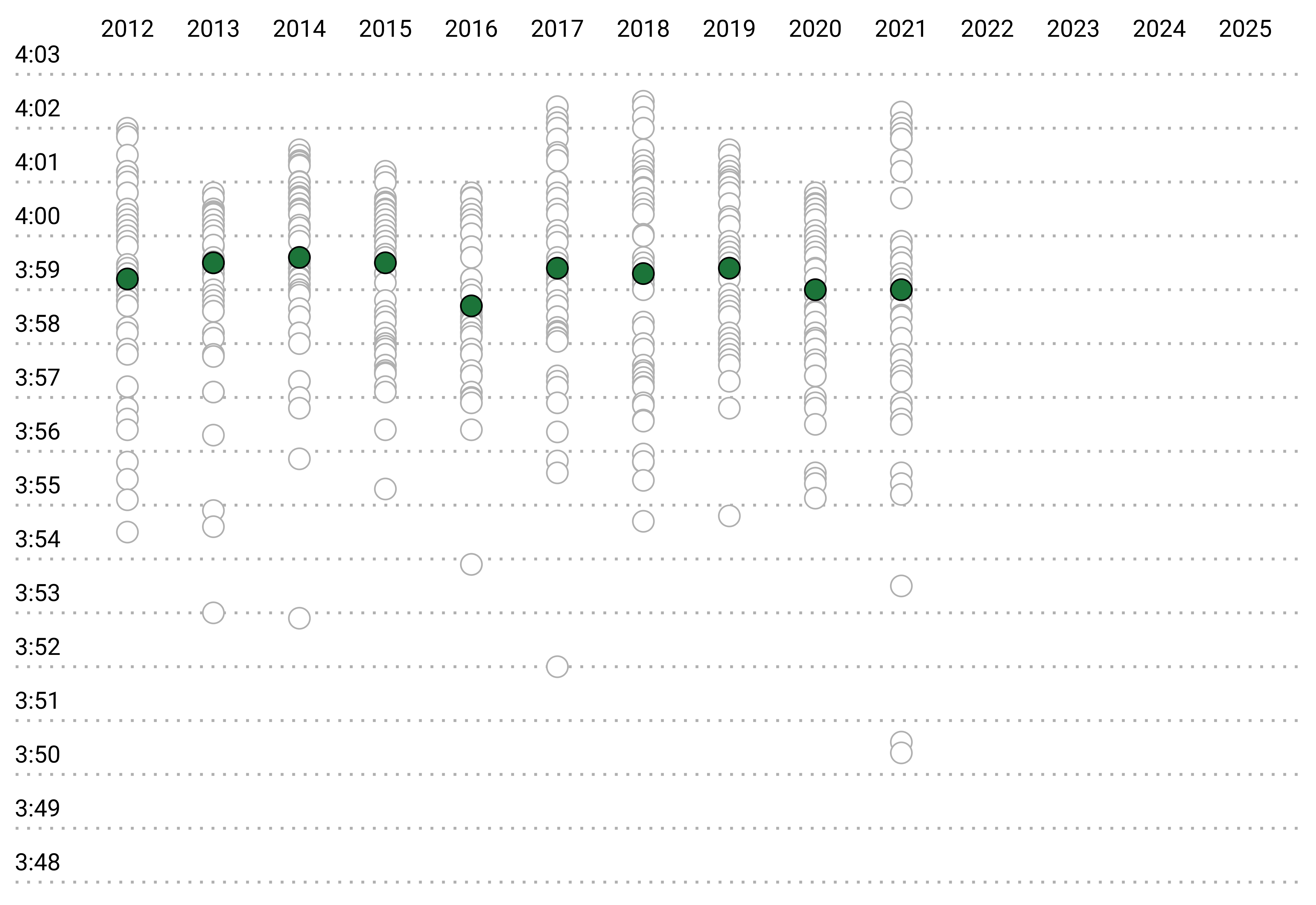 During this period, the median time hovered around 3:59.